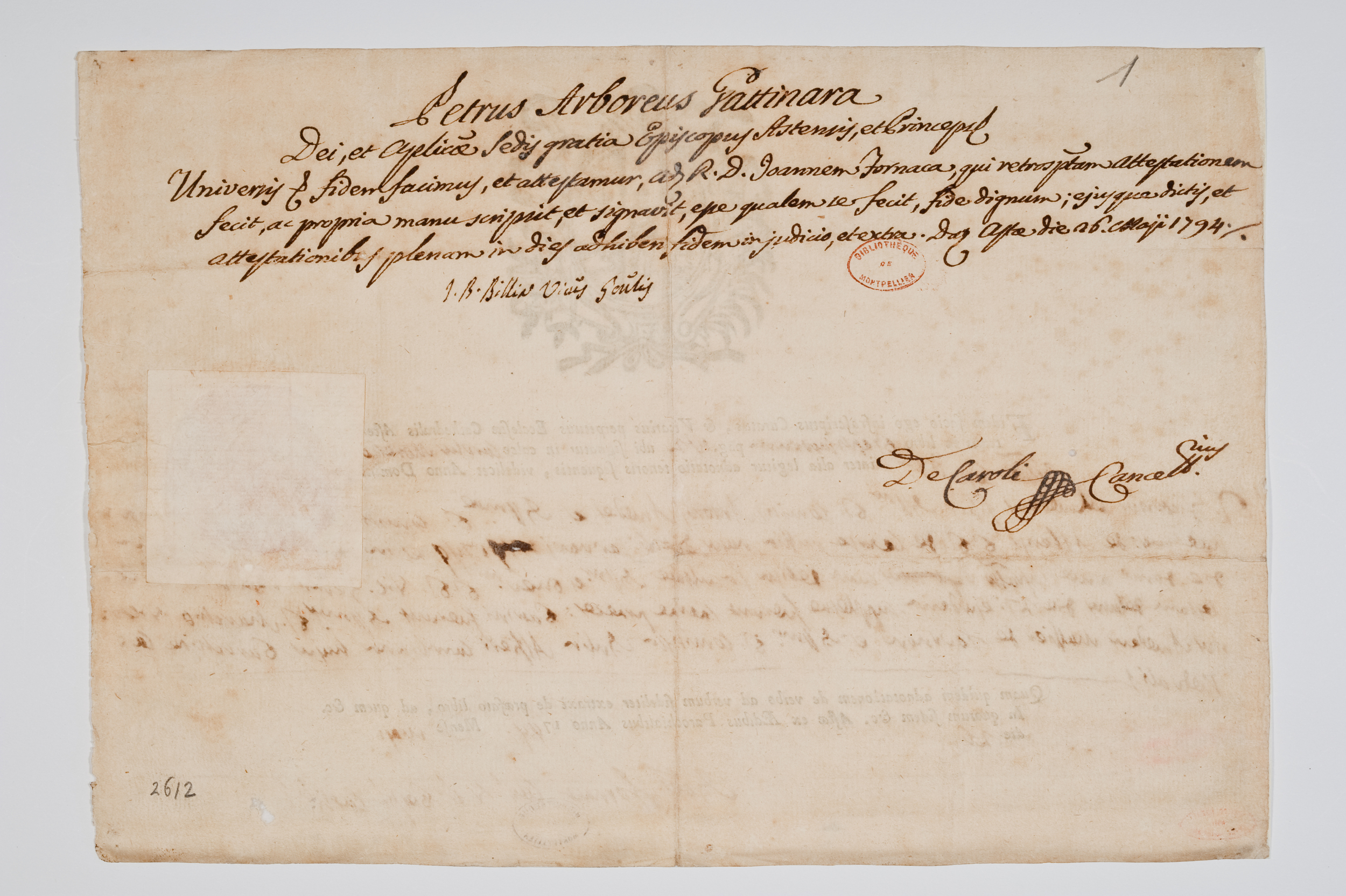 Lieu de conservationAsti, Fondazione "Centro di Studi Alfieriani", Carte Alfieriane, 01-008