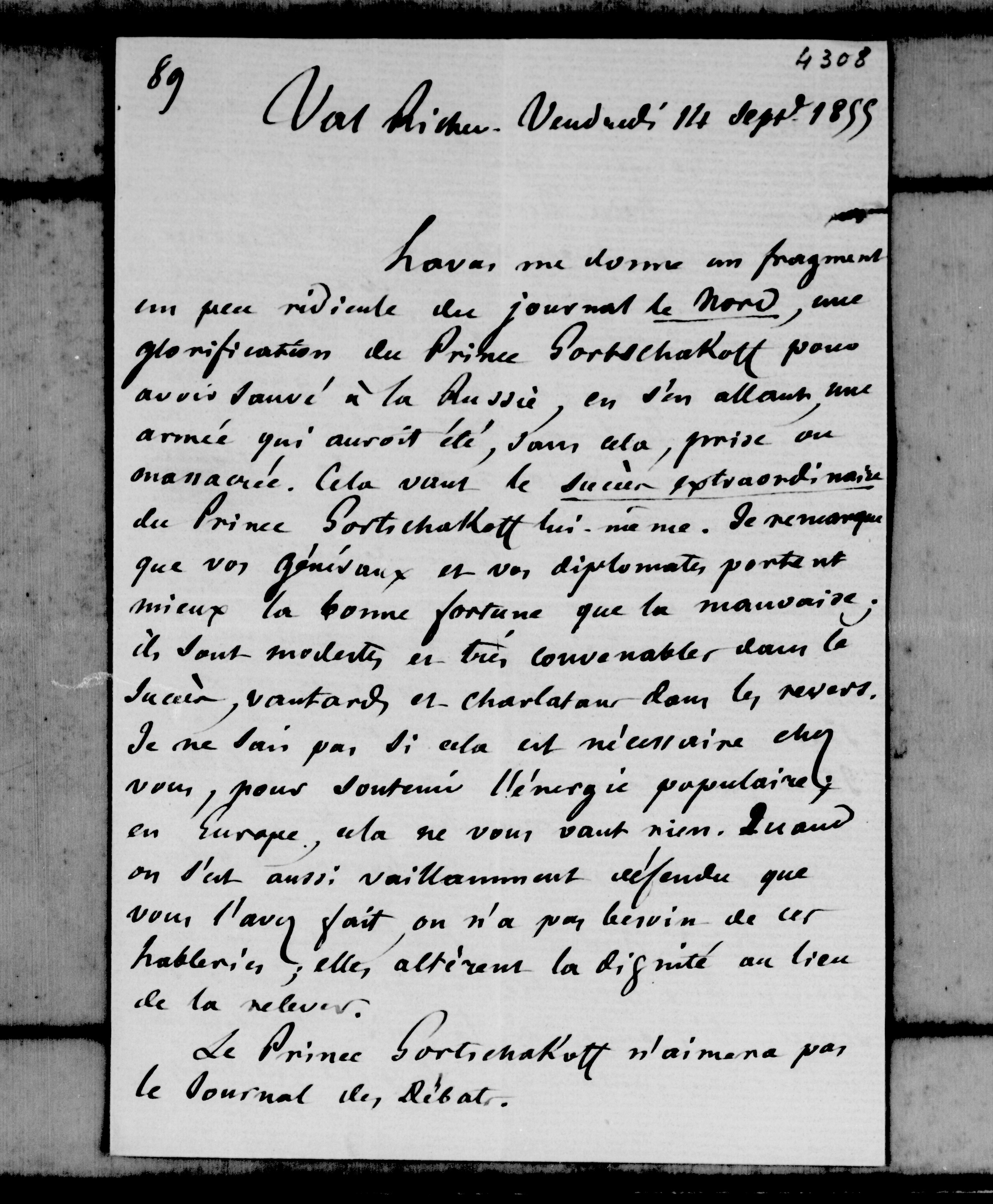 Les correspondances académiques, politiques et diplomatiques d’un acteur du XIXe siècle