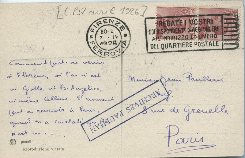 ⇽ Lettre de Marcel Arland à Jean Paulhan, 1926-04-07 |