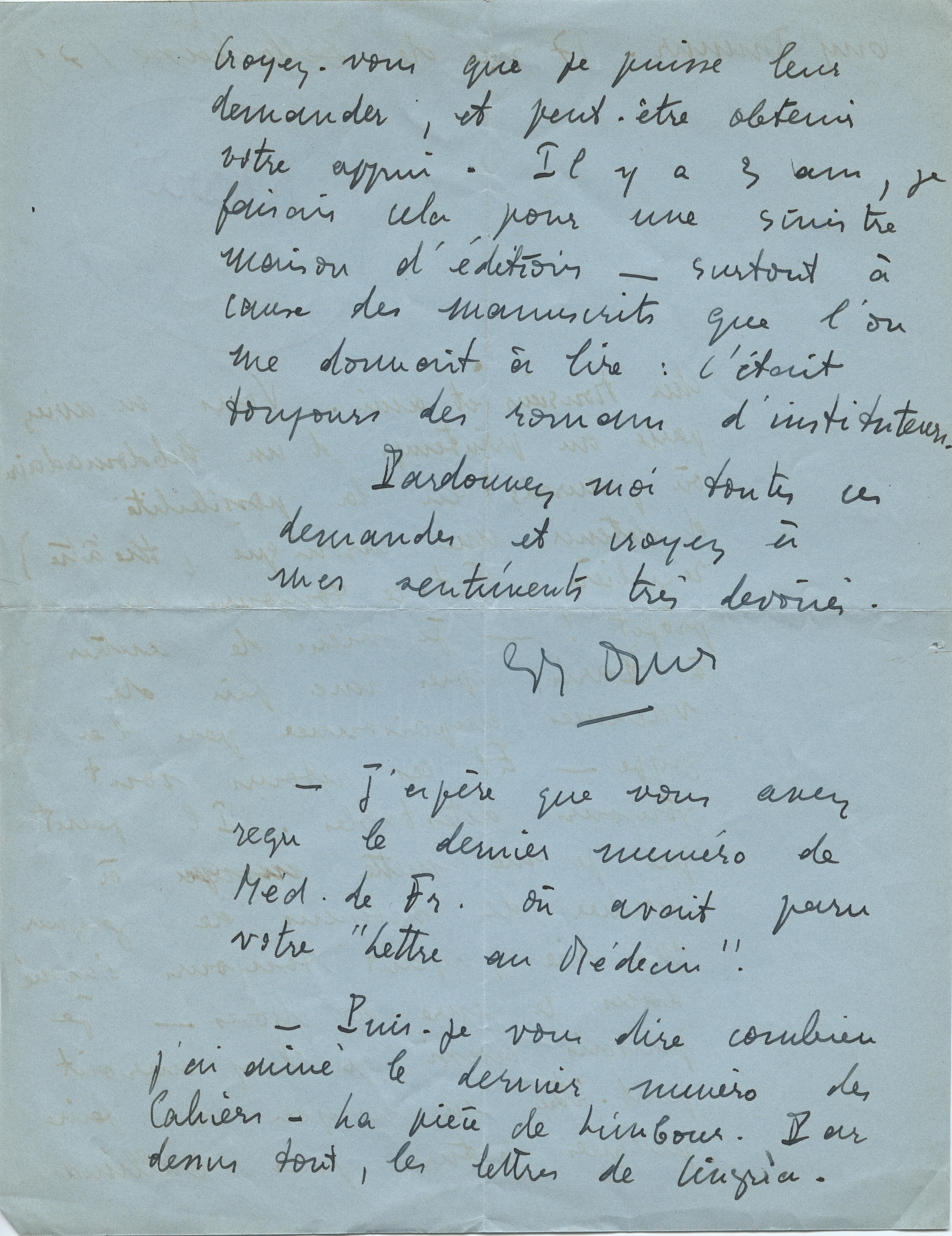 ⇽ Lettre de Guy Dumur à Jean Paulhan, 1950 |