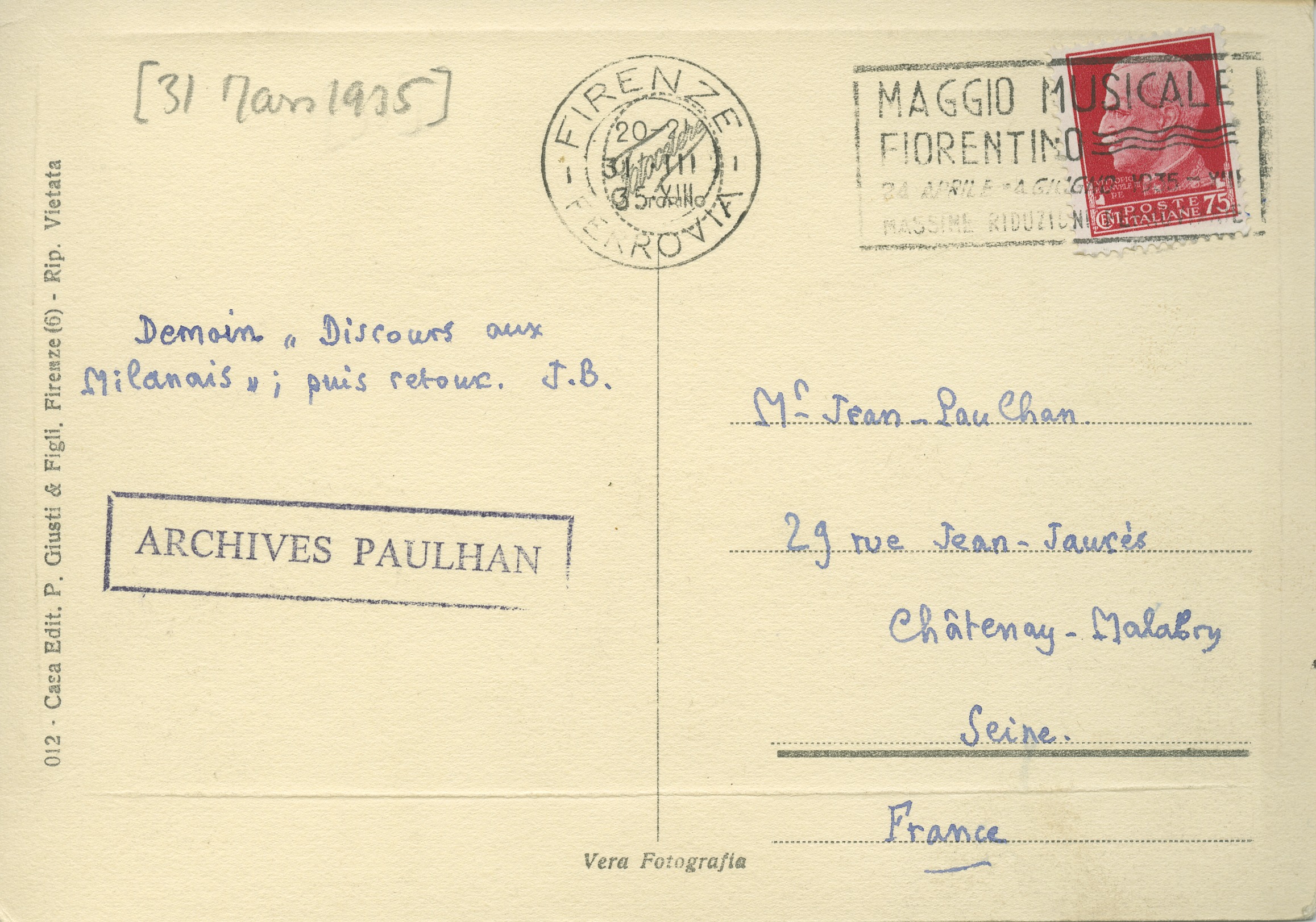 Lettre de Julien Benda à Jean Paulhan, 1935-03-31 |