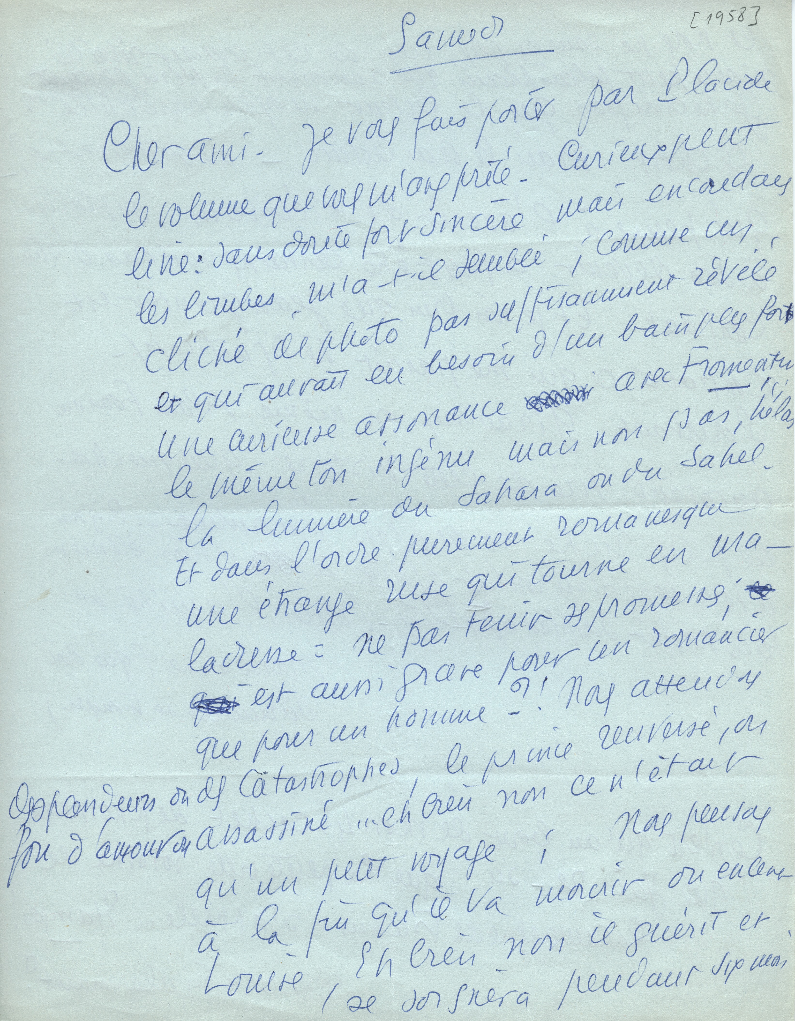Lettre de Marie-Anne Comnène à Jean Paulhan, 1958 ⇾
