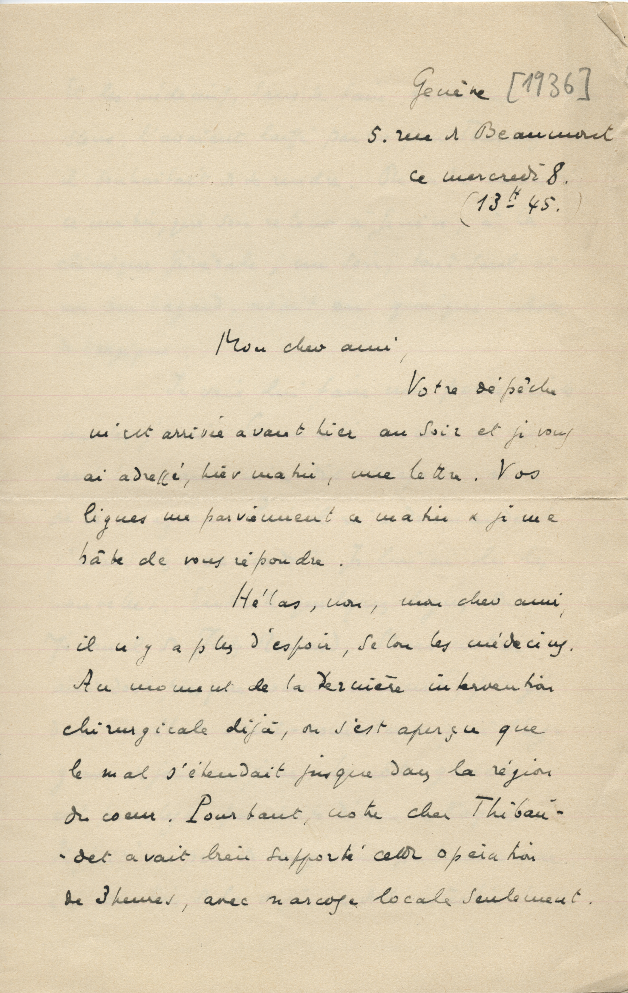 Lettre de Léon Bopp à Jean Paulhan, 1936 |