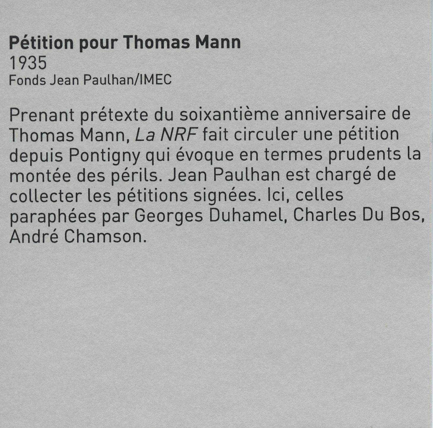 ⇽ Lettre d'André Chamson à Jean Paulhan, 1935 |