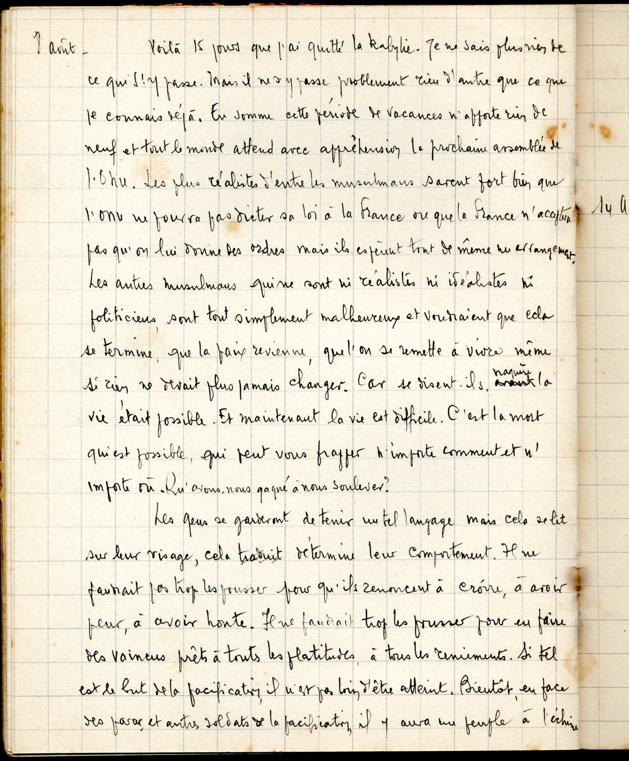 Feraoun, Mouloud, Cahier 13/24, 1957.05.26 - 1957.08.14